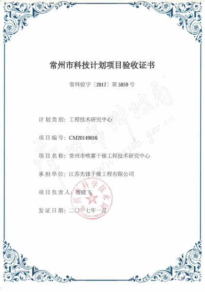 • 常州市科技计划项目验收书