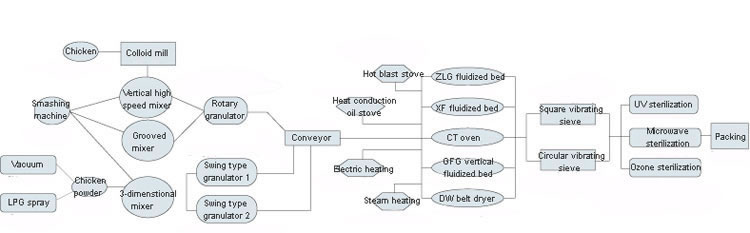 Une grande variété de machines sont utilisées pour la production de l'essence de poulet. Voici certains types de machines recommandées pour le sécheur et granulateur pour assaisonnements.