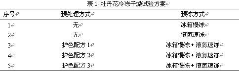 冷冻干燥方案:为了研究不同条件下牡丹花真空冷冻干燥的情况,拟对牡丹花真空冷冻干燥采取如表1所示的试验方案。