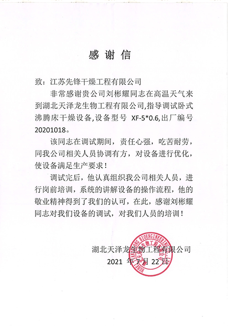 • 湖北天泽龙感谢信