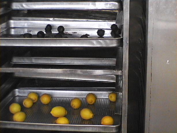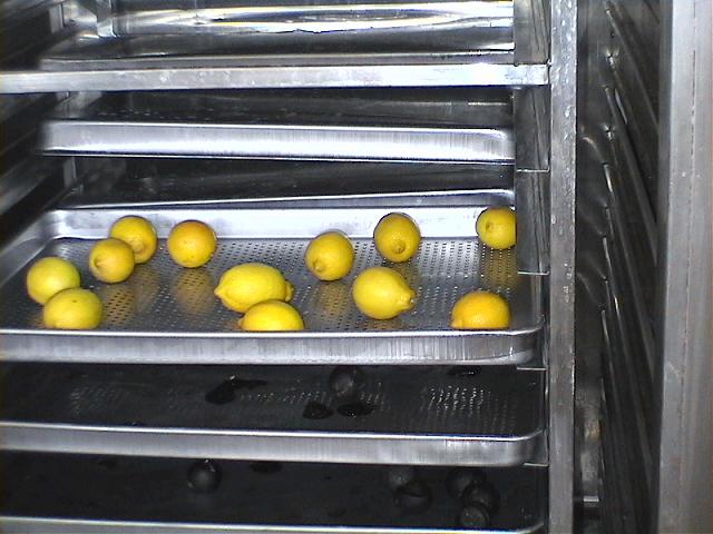 [图一:新鲜柠檬放入热风循环烘箱]