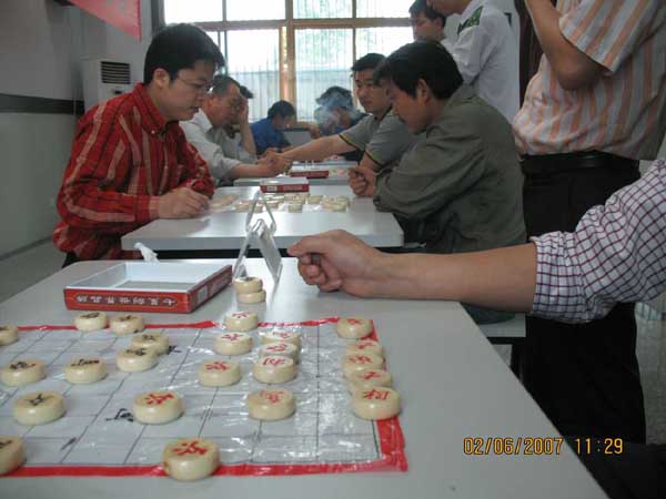 为积蓄企业文化,凝聚企业合力,促进员工交流,丰富员工生活,先锋公司^届员工象棋比赛于6月1日开始正式拉开帷幕。本次象棋比赛活动,是本着公平、公正、公开的原则,以^棋院审定的《^象棋竞赛规则》、《围棋竞赛规则》为依据,小组赛采用本人抽签与人工编排相结合的办法,决出“十佳棋手”后,再在10人中运用淘汰制淘汰五名,胜出的五人进行循环赛,决出冠、亚、季军。正如此次的比赛活动宗旨:以棋会友,加强公司棋友联系;切磋棋艺,提高公司棋友水平;丰富生活,增添公司棋友乐趣;提倡良好的棋德棋风,发扬高尚的竞技精神。自“先锋公司第二届员工乒乓球比赛”后举行的此次象棋比赛,以及接踵而至的其他企业文化活动,标志着先锋公司加快企业文化建设步伐的不断加快。