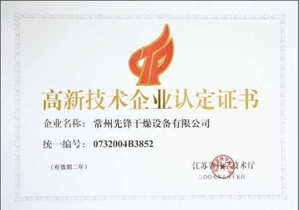 “江苏省高新技术企业”的权威性和含金量不言而喻,在整个常州市多元投入、创新投入之势高潮迭起之际,先锋公司创优自身环境、科学发展之态势如破竹,勇创省高新技术企业就是^为坚实的一步。据常州市武进区科技局统计,全区现有“江苏省高新技术企业”105家(武进区全区企业总数65000户-武进工商局4月底统计数据),而在常州市干燥企业林立的干燥行业,江苏省高新技术企业更是^,仅为三家。