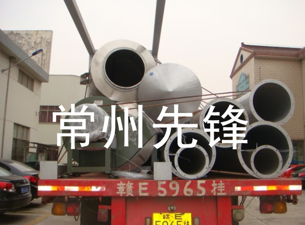 河南西峡某化工厂订购的石墨干燥机已制作完毕,经检验合格正在装车发运。设备为XSG-10型旋转闪蒸干燥机,蒸发水份350kg/h,初始水份33%,^终水份要求小于0.5%,比重0.5g/cm3,采用间接燃煤热风炉作为热源,以旋风分离器+布袋除尘器的二级收集方式作为物料的收集,与物接触处SUS304不锈钢材质。